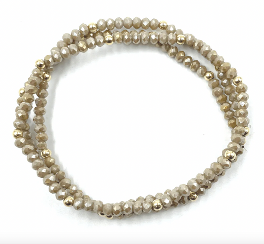 Silver, Grey, + Gold Crystal Stretch Bracelet