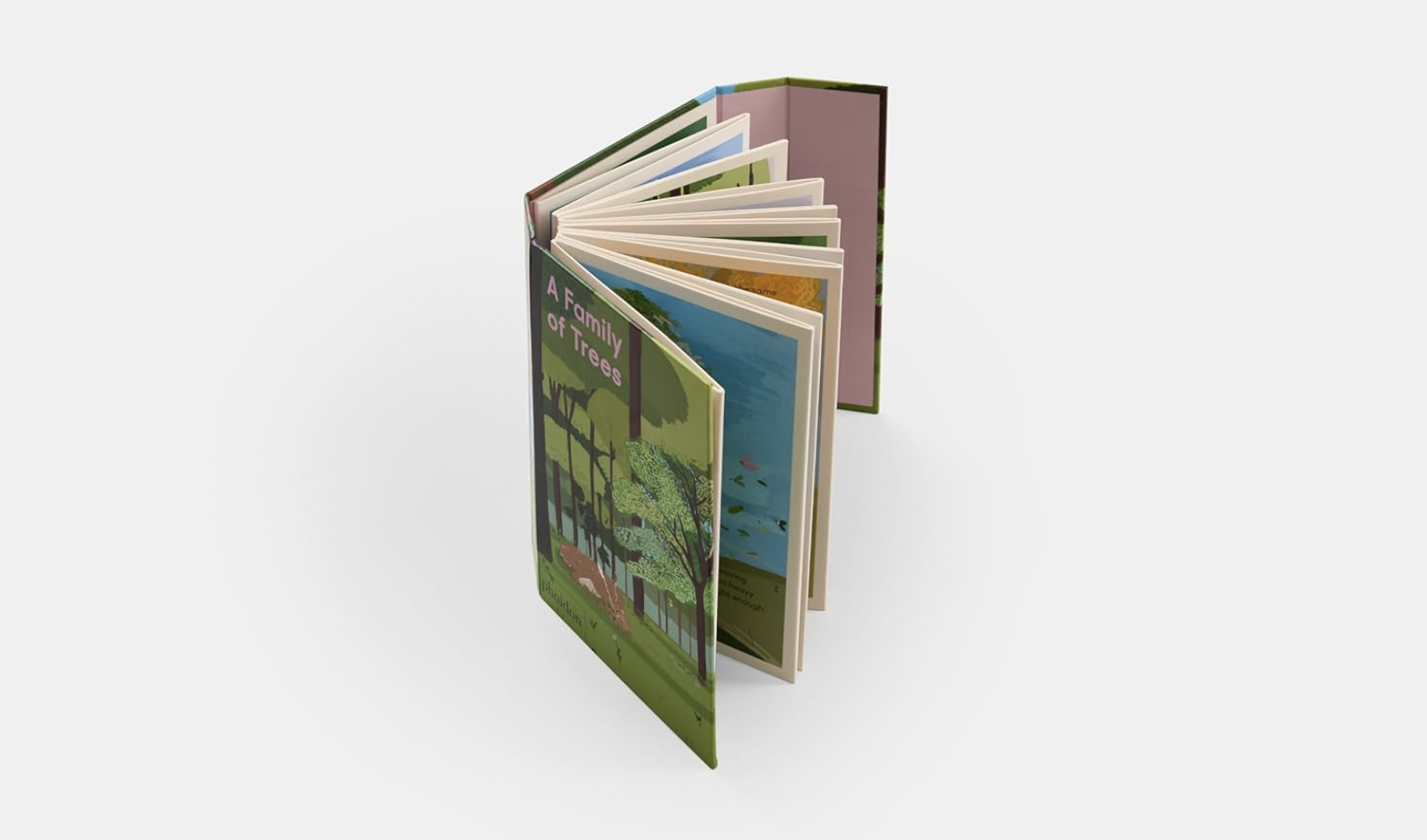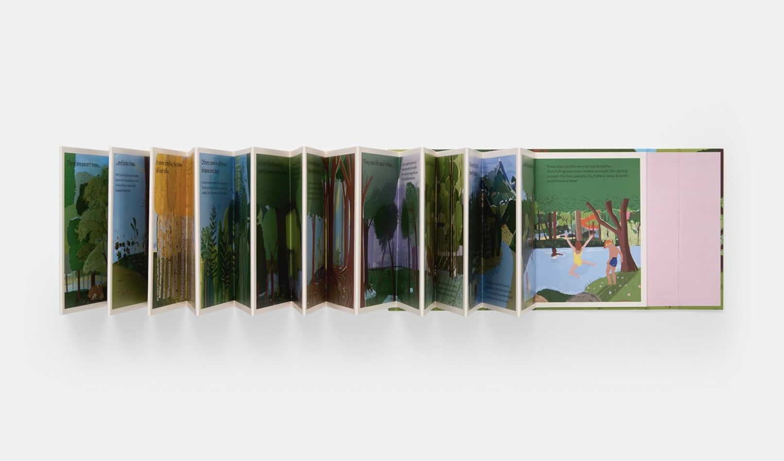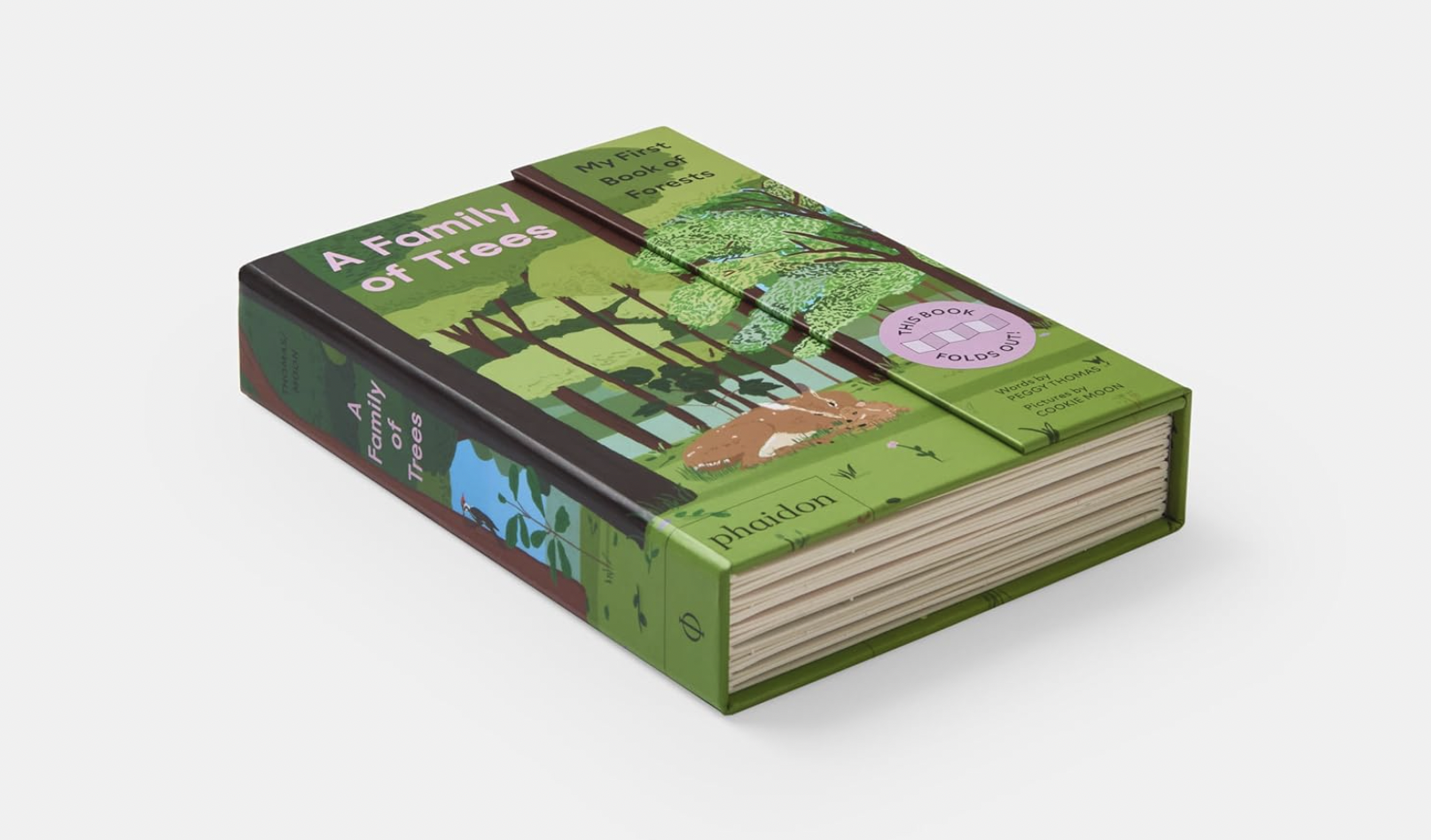 This artful and heart-warming introduction to forests and the new science of tree communication has a stunning accordion-style board-book format. Housed in a gift case with a magnetic closure, it opens up to create a forest-scape that is 2.47 metres or over eight-feet long – both a book to treasure and a beautiful, fold-out shelf display of a forest-scape, perfect for any child’s room.