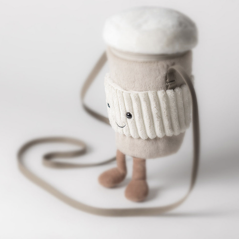 Dangling legs, neat zip-top, and soft mocha hues: the Amuseables Coffee-to-Go Bag is your new favourite on-the-go essential.