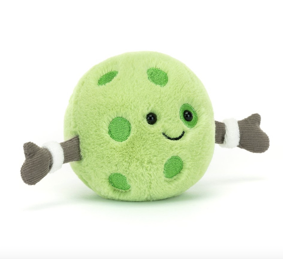 A perky green go-getter who is constantly ready for a game (or two), Amuseables Sports Pickleball loves sports so much she’s also a part-time umpire! She loves nothing more than a game of doubles with pal from-across-the-pond, Amuseables Tennis Ball. Up for fun (on and off the court) she’s the perfect partner for game day – primed and ready to rally!