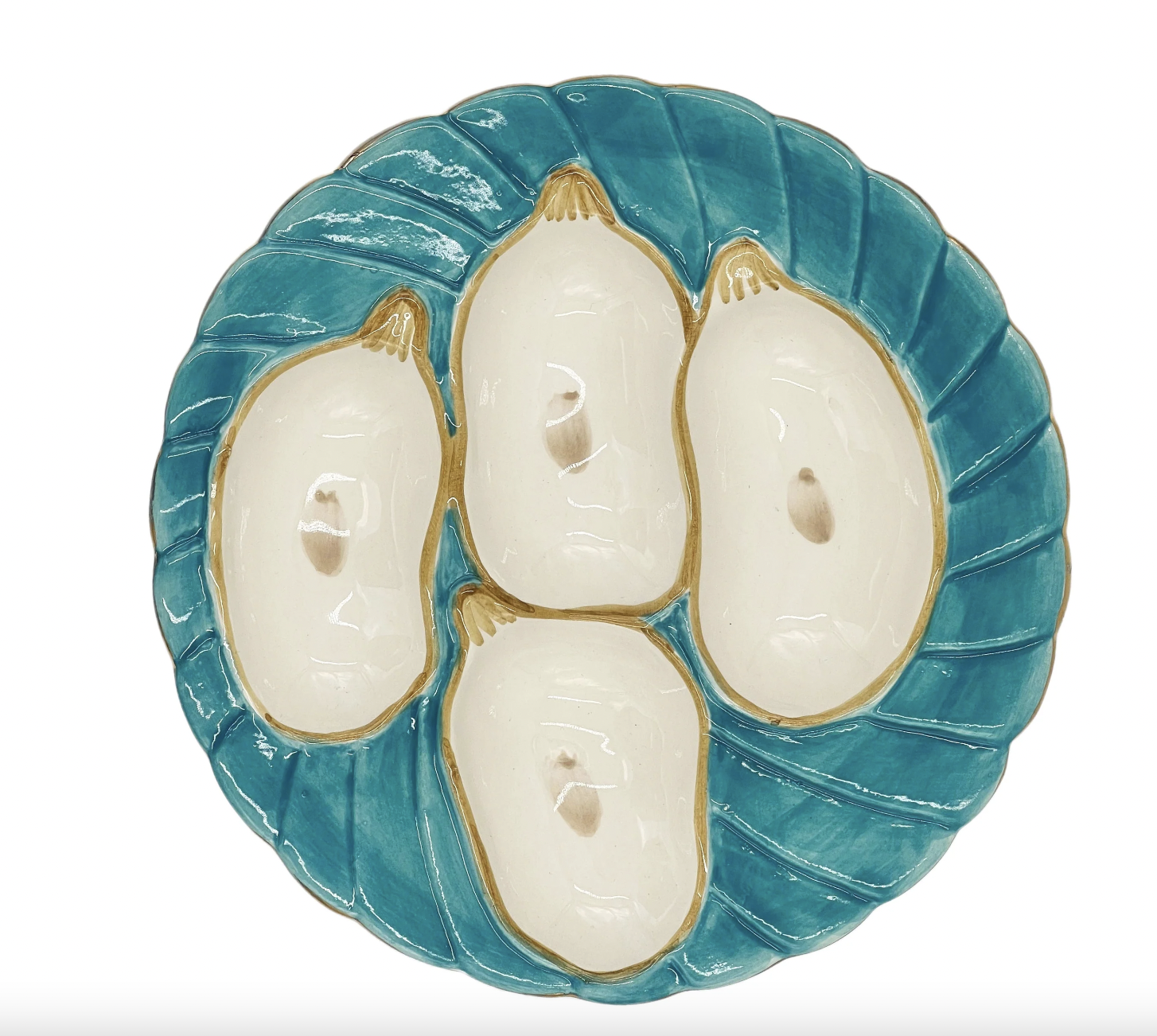Oyster plates are traditional favorites in best restaurants and Grandmillennial homes. Ours are perfect for serving raw oysters or any seafood creation, as well as hanging on a wall for upping your home decor. Available in four fresh colors (with gold detailing) for a lively table setting. Hand-wash only. Made in Portugal