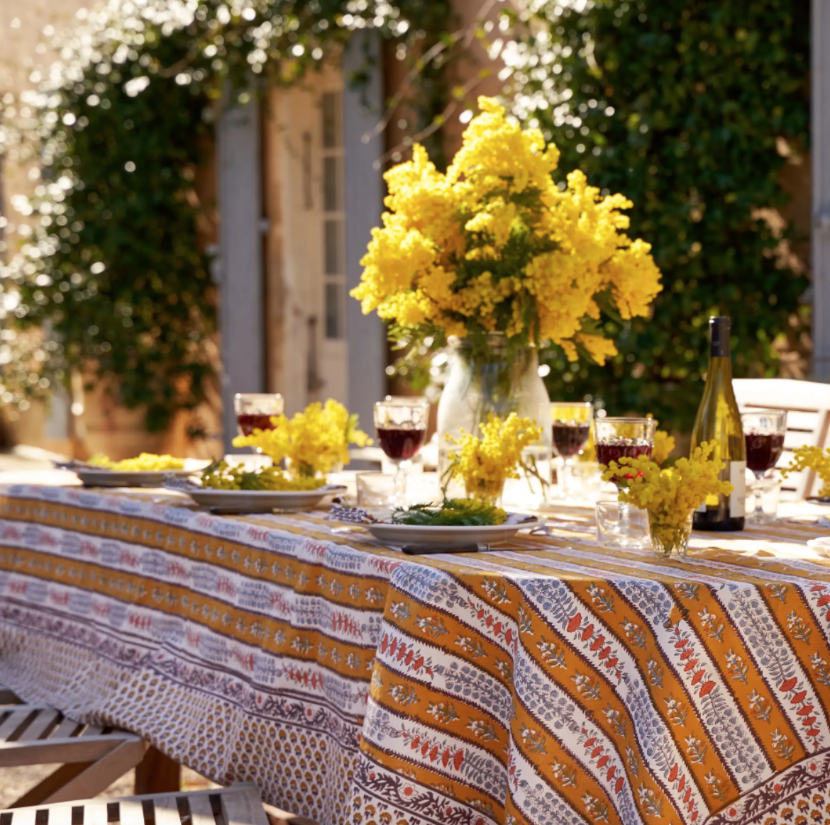 Featuring delicately colored botanical designs that evoke the sun-kissed splendor of Provençe, the Avignon collection is named after the French city famed for its rich cultural legacy. Whether you’re dining indoors or out, these linens add a touch of pastoral French elegance to any meal, featuring a pattern hand-printed by skilled artisans using a time-honored technique, which results in a singular piece of craftsmanship. Displays a pattern inspired by the verdant splendor of Southern France. Pair with our Avignon napkins.