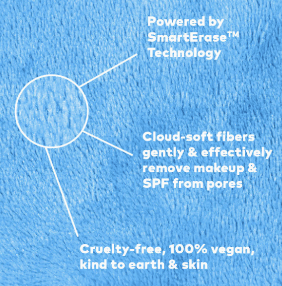Removing makeup has never been so simple. This eco-friendly makeup remover is changing the way the world removes makeup. This beauty routine will simplify your skincare routine & change your life. Erase all makeup with JUST WATER™ including waterproof. This patented, water-activated, cloud-soft fibers gently & easily remove all makeup & sunscreen from pores. 2 in 1 benefit: one side erases makeup & one side exfoliates skin.