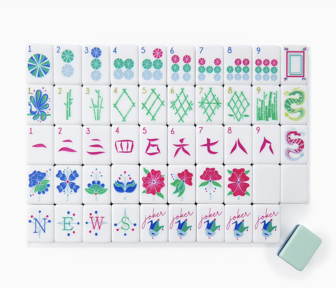 Introducing the Birdie Mahjong collection, inspired by the game's most eye-catching element - the vibrant blue and green Bird Bam! This set features a captivating interplay of navy, seafoam, and light blue tiles, guaranteed to turn heads at your next Mahjong night. These hand-painted tiles are crafted from high-quality materials for lasting use, the Birdie line is perfect for players of all levels. Each set includes a complete set of 160 tiles, making it the ideal gift for Mahjong lovers or a luxurious upgrade for your game nights. So ditch the boring tiles and add a touch of elegance - Let's play Mahjong with the Birdie collection!