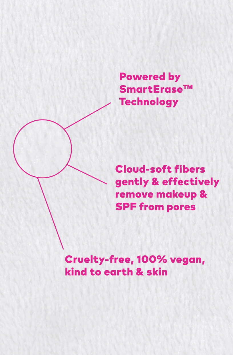 Remove & Erase makeup with JUST WATER™ including waterproof. The patented, water-activated makeup remover uses cloud-soft fibers to gently & easily remove all cosmetics & sunscreen/SPF. 2 in 1 benefit: Erase & Exfoliate