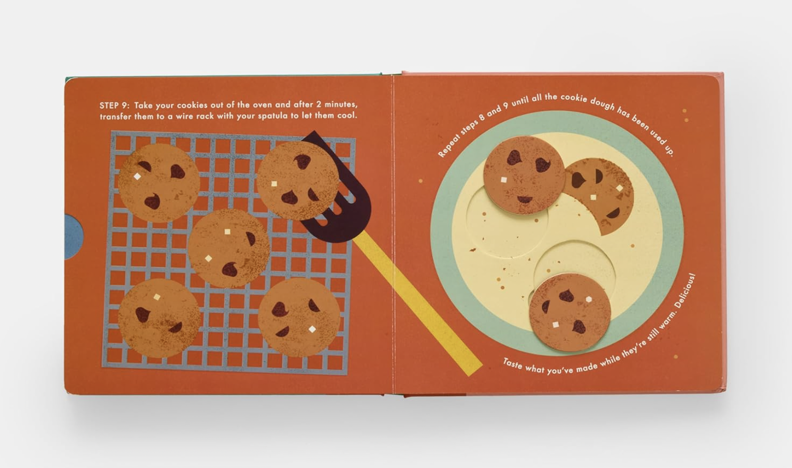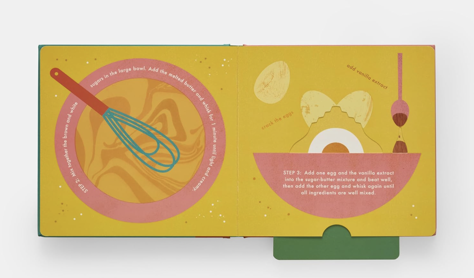 Bake cookies from scratch inside this interactive recipe book - sift the flour, whisk the sugar, crack the egg, pour the chocolate chips, and more!
