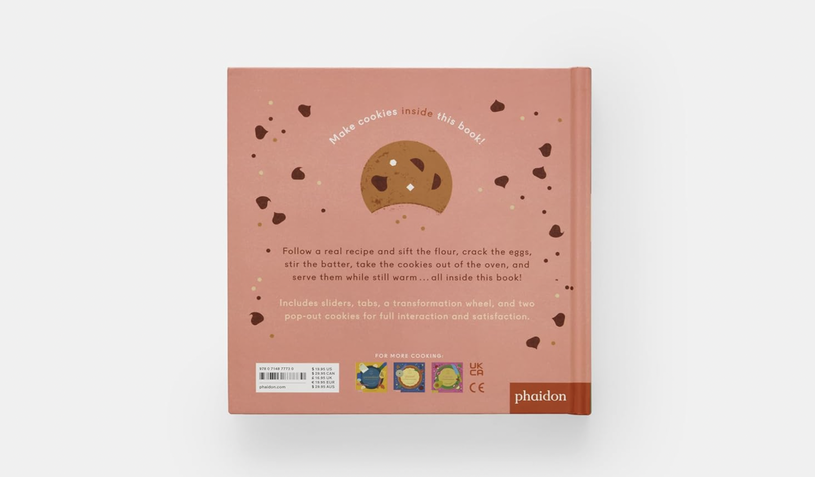Simple yet factual recipe text takes readers through the steps of baking cookies, from combining the dry ingredients to pulling fresh cookies out of the oven, while the interactive features invite them to participate in the process. Move the sifter from side to side to separate the flour, turn the wheel to mix the batter, pull the tab to crack the egg, slide the oven tray out, and more! One hundred percent adult-free, danger-free, and mess-free - baking cookies has never been so independent! The fourth book in Nieminen's bestselling COOK IN A BOOK series.