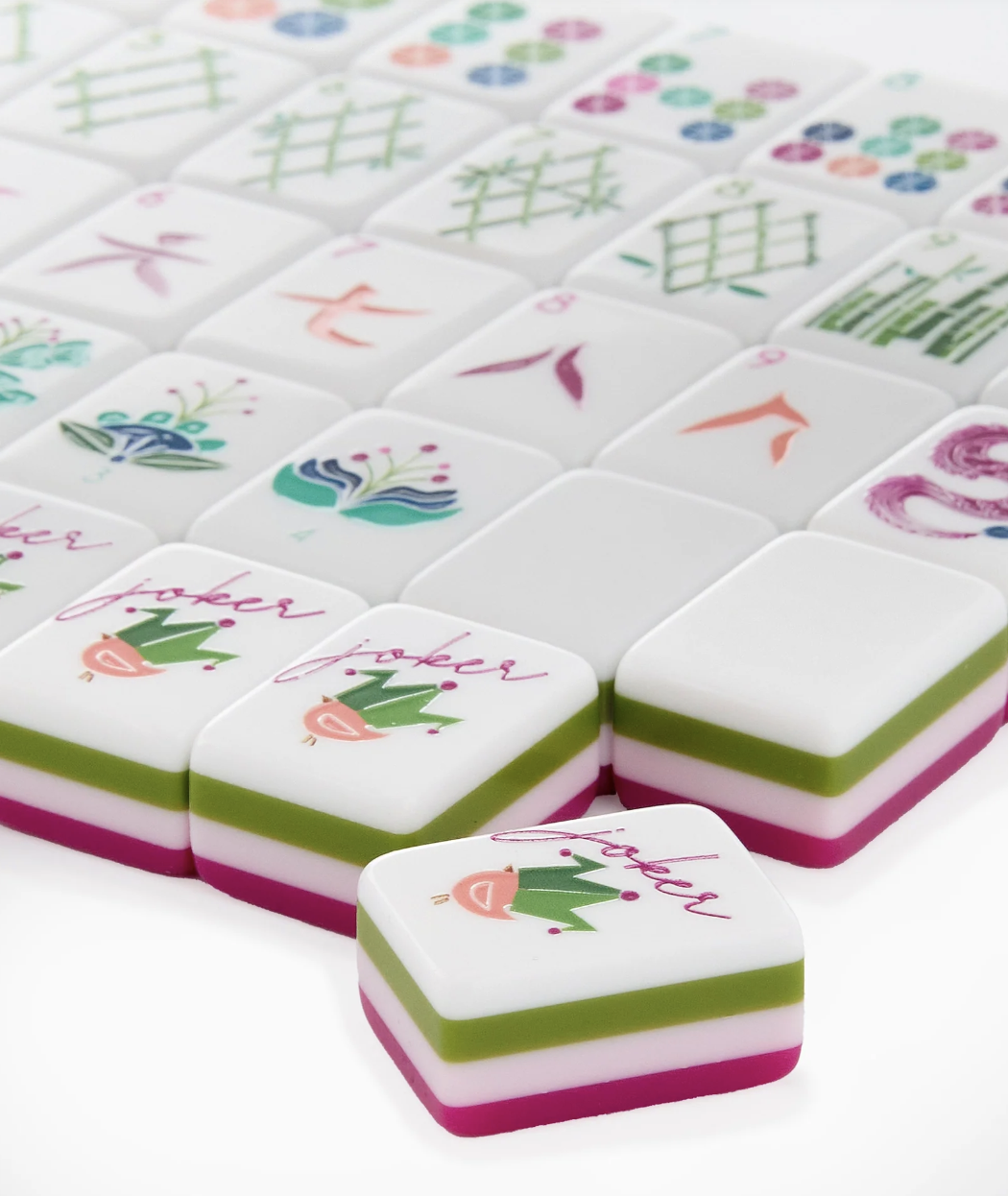 Introducing Dandy where timeless elegance meets vibrant flair. With a mesmerizing fusion of magenta, olive green, and baby pink tiles, Dandy brings a new level of sophistication to your Mahjong game. Meticulously crafted from premium materials, each tile in the Dandy line is designed for enduring quality, ensuring countless game nights filled with enjoyment. Whether you're a seasoned Mahjong enthusiast or just starting out, our set of 160 tiles caters to players of all levels, making it the perfect gift for aficionados or a deluxe addition to your own collection.