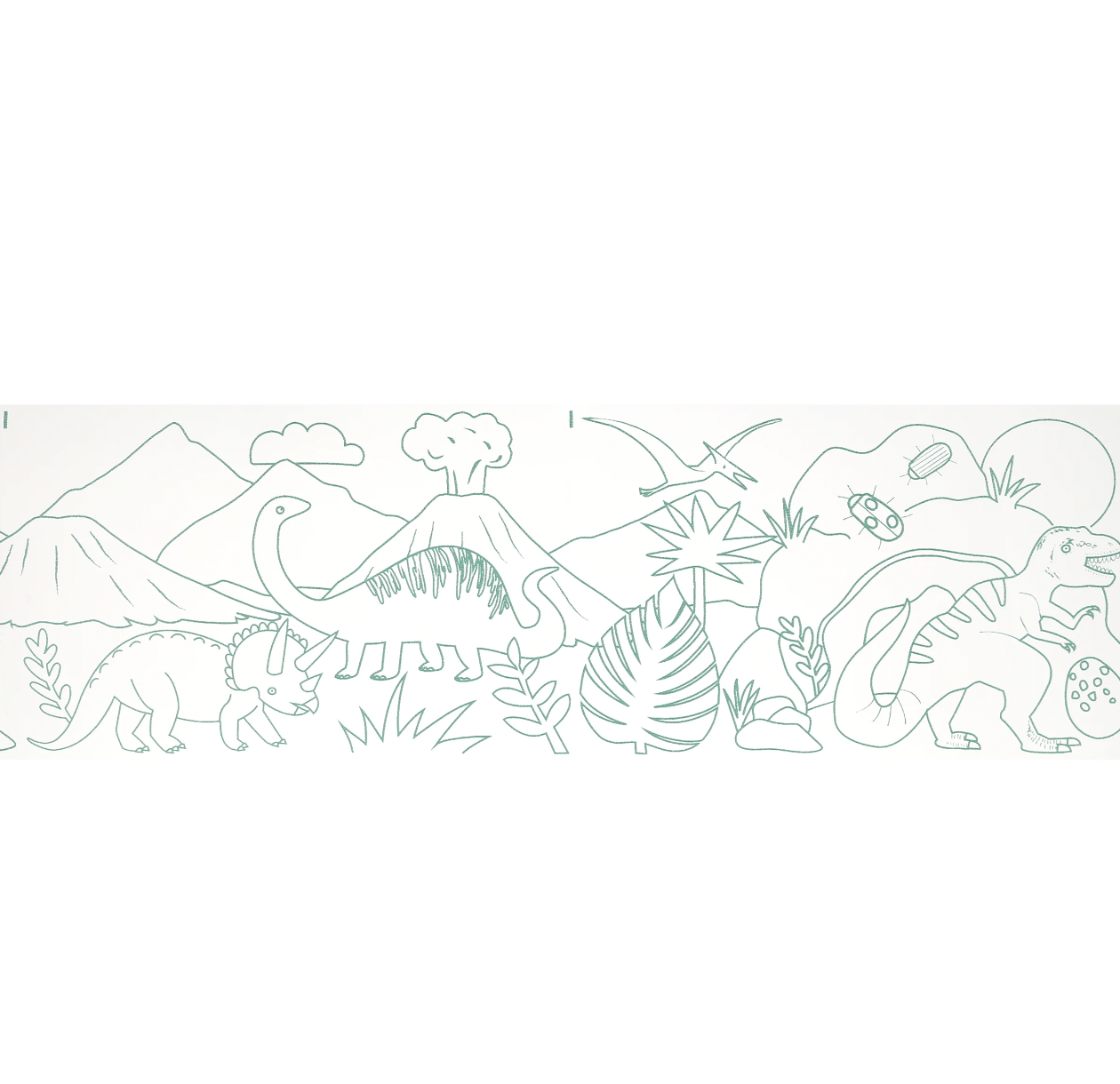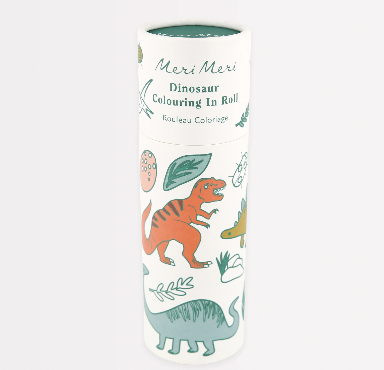 - Includes a dinosaur coloring roll with 9 perforated sections, featuring different dinosaurs