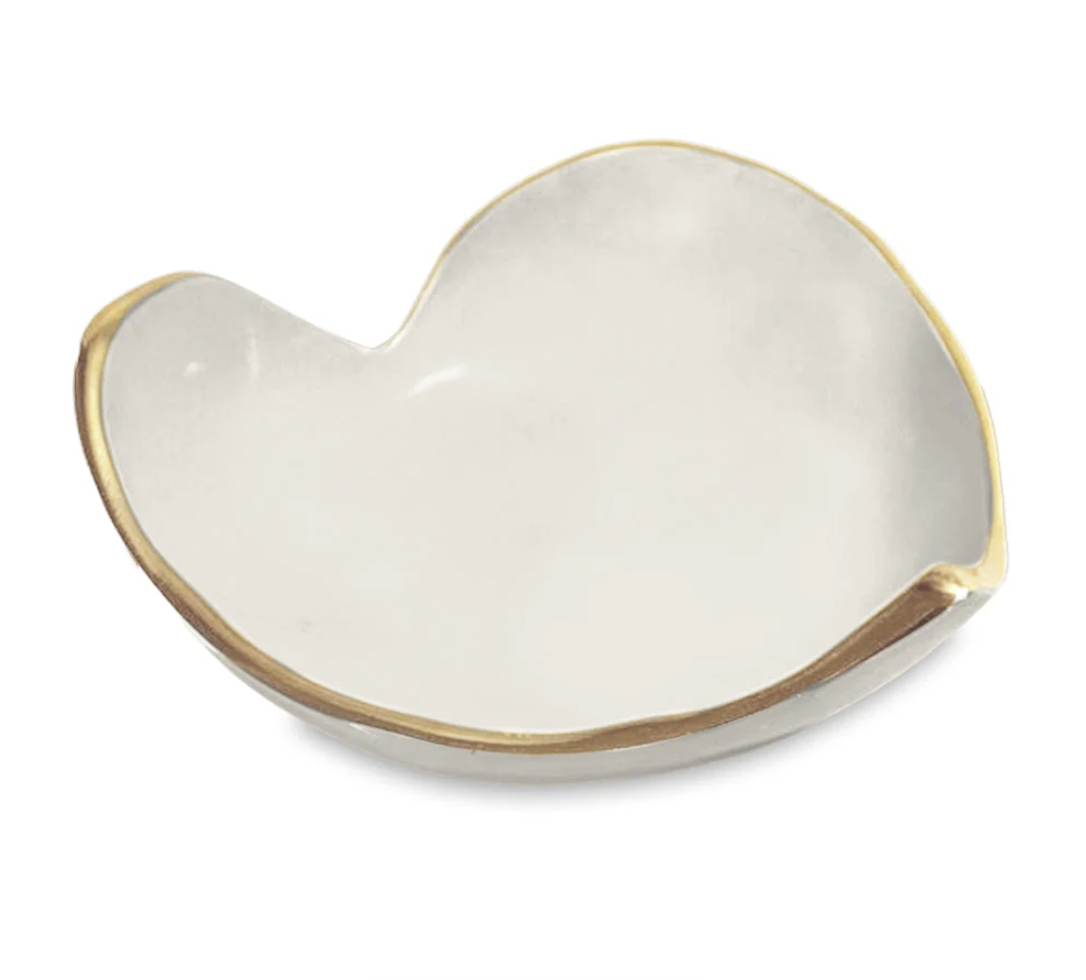 Notable for its artistic form, and brilliant enameled finish, rimmed in gold, the ENCANTO Soho Mini Heart (Cream) is a unique expression of love. Great on the desk or vanity, or use to hold earrings and other small jewelry on your bedside table. Beatriz Ball’s intensely handmade products use eco-friendly and sustainable materials and are crafted by artisans who trace a heritage of metalworking for generations. Made of a top quality, easy-care, aluminum alloy with an enamel finish. This item is for decorative purposes only.