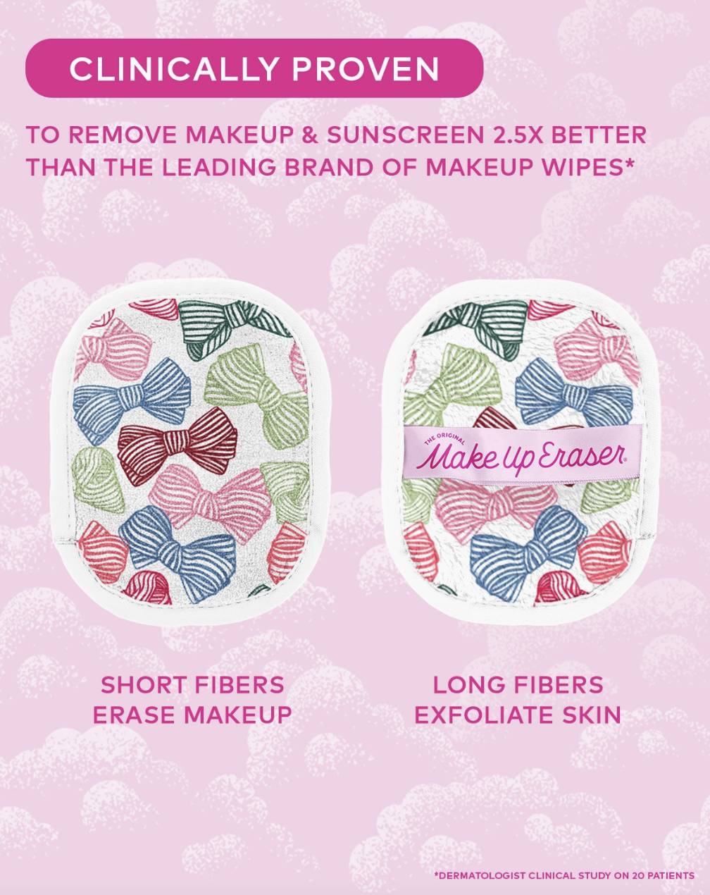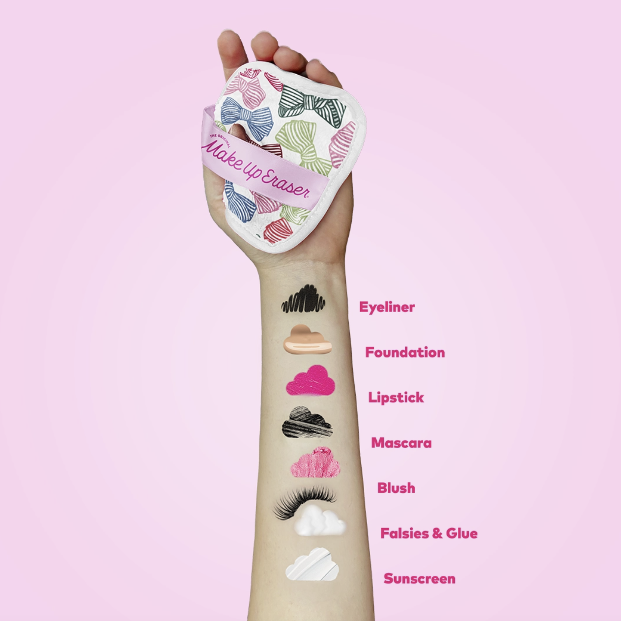 Remove & Erase makeup with JUST WATER™ including waterproof. The patented, water-activated makeup remover uses cloud-soft fibers to gently & easily remove all cosmetics & sunscreen/SPF. 2 in 1 benefit: Erase & Exfoliate
