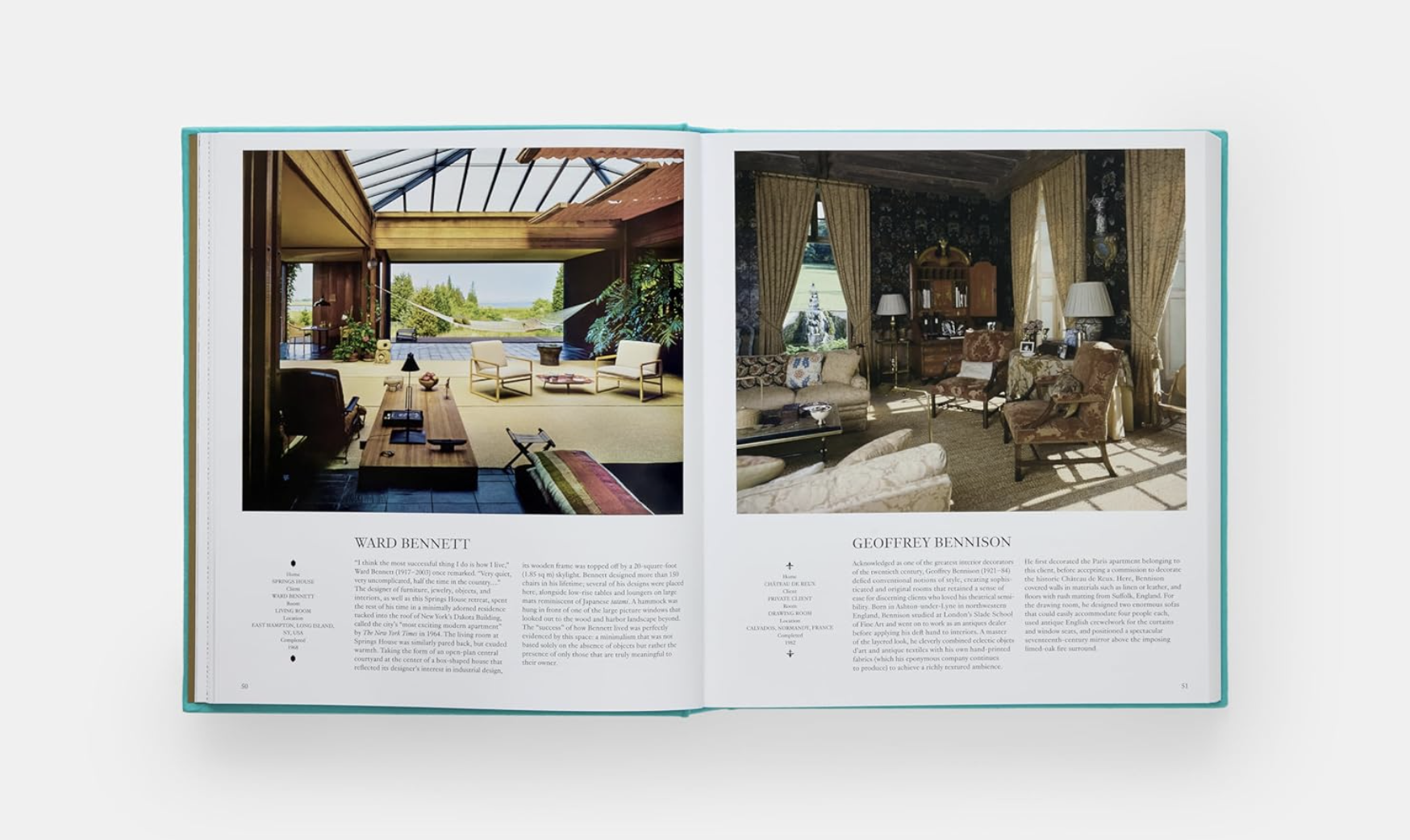 Ranging from the beginning of the twentieth century to the present day, the book features everything from chateaux, town houses, and penthouses to desert ranches, beach houses, and tiny apartments in more than 25 countries.