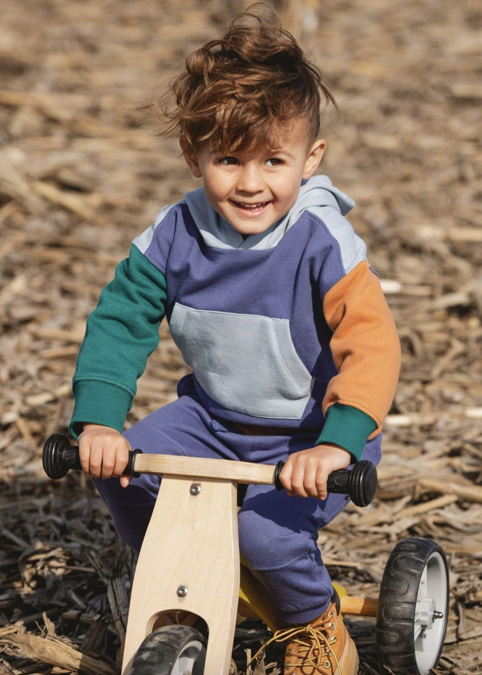 Contrast sleeves add bold pops of color to this cool color blocked fleece hoodie. In a cozy pullover silhouette made from cotton/poly fleece, this sweatshirt features a contrast hood, a contrast kangaroo pocket, and soft rib knit trim at the hem.