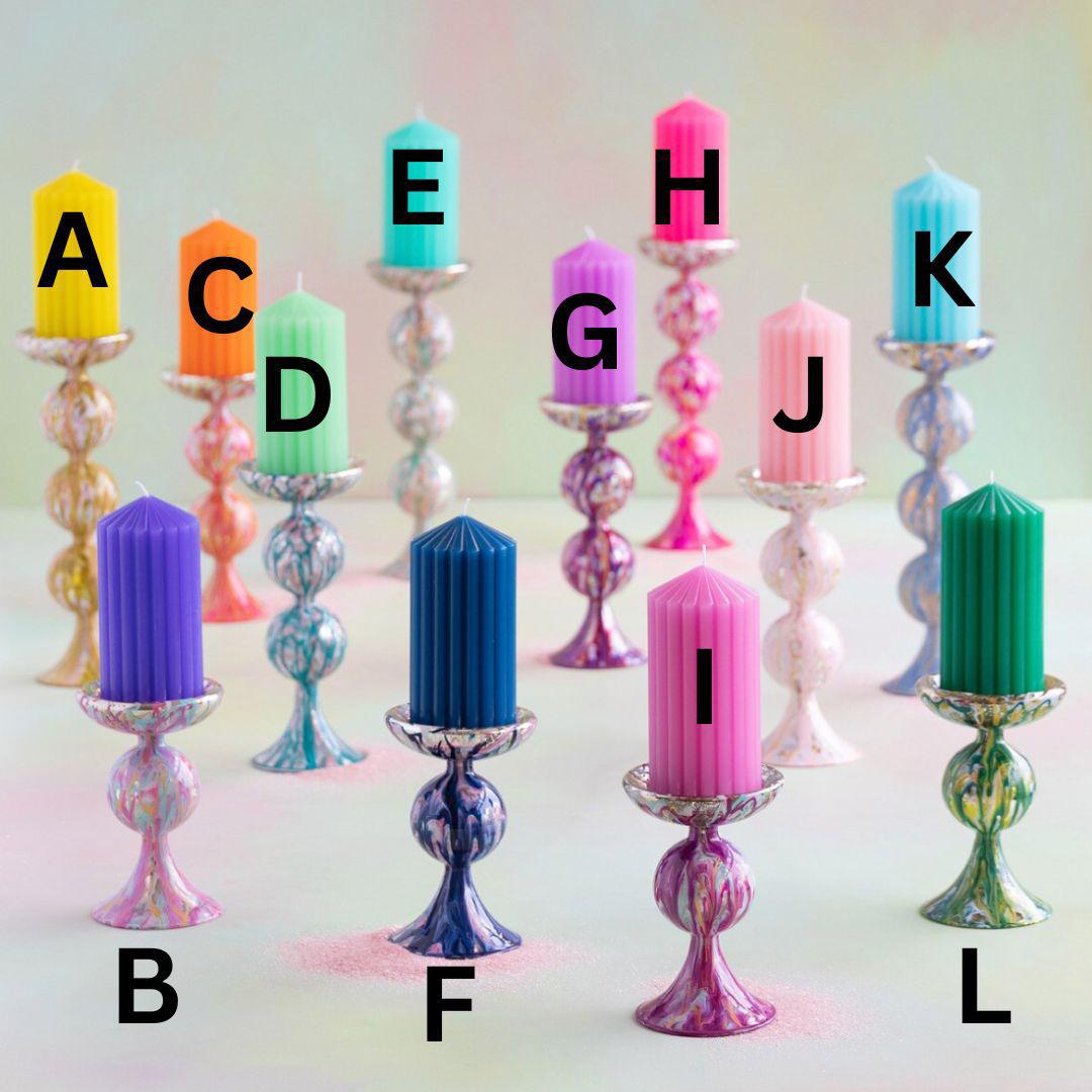 These saturated and sweet glass candle holders pair perfectly with our rainbow finial candle holders or on their own making quite a statement!!