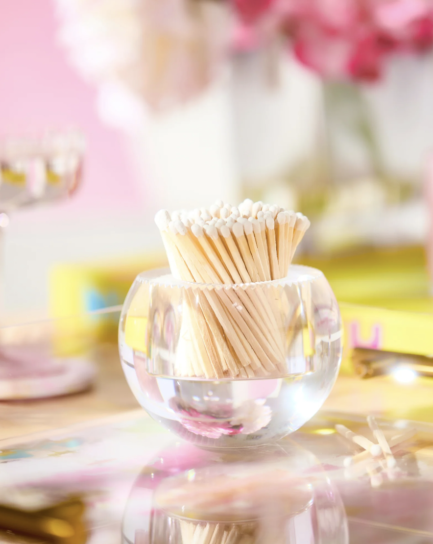 Get fired up with this Acrylic Match Striker! This acrylic match strike is the perfect accessory for your coffee table, desk, or any space that could use a little flair. It features a strike pad on the bottom and comes with 140 matches. Keep this baby ready for any occasion, let's get lit!