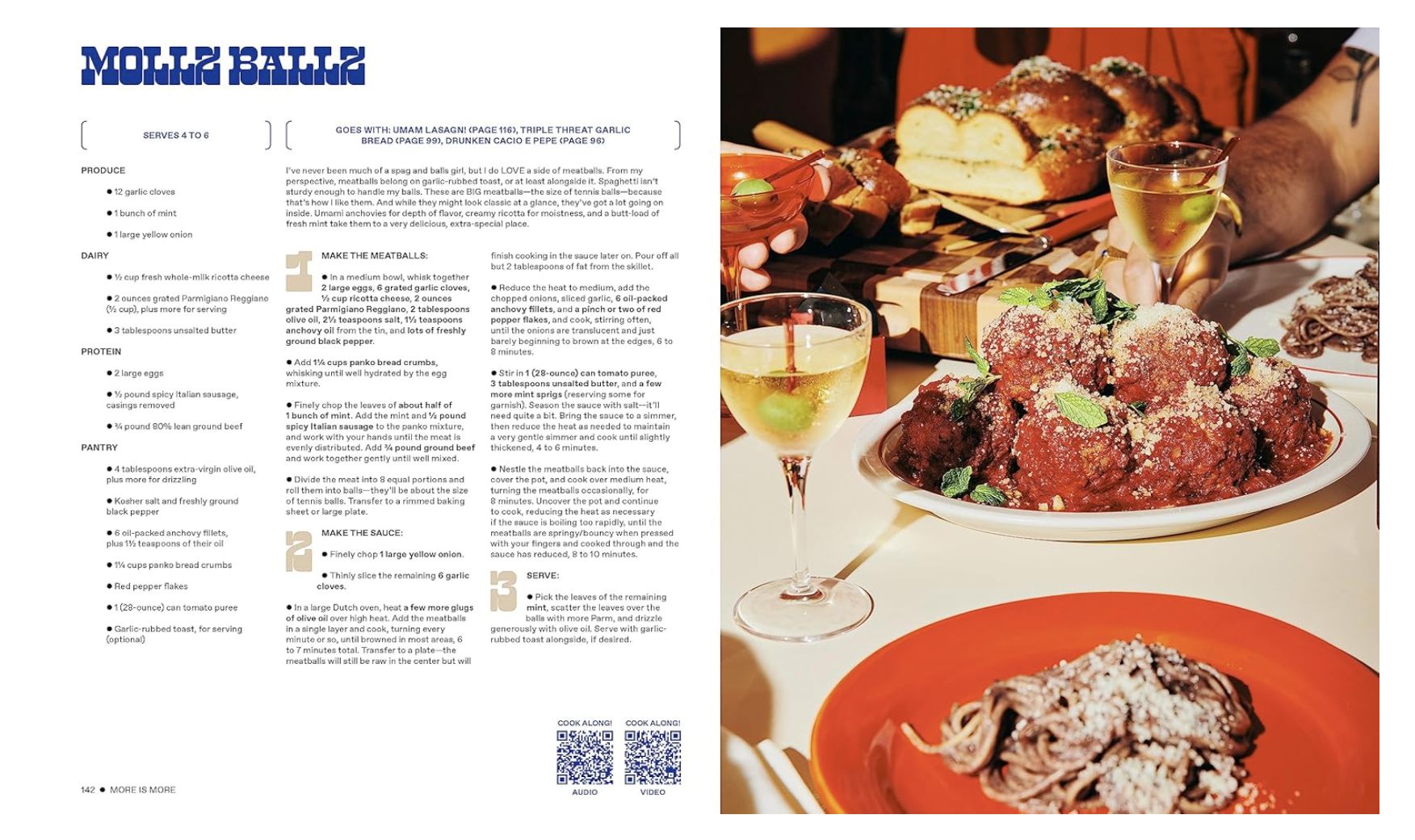 It’s time to crank up the heat and lose the measuring spoons because the secret to cooking is hiding in one simple motto: MORE IS MORE. In her bestselling debut cookbook, Cook This Book, Molly Baz taught the cooking essentials and put her love for mortadella and dill on blast. In More Is More, she’s teaching cooks how to level up their cooking, loosen up in front of that ripping hot pan, and seek deliciousness at all costs. (And yes, there will be more mortadella.) More Is More is a philosophy that encourages more risk-taking, better intuition, fewer exact measurements, and a “don’t stop ‘til it tastes delicious” mentality.
