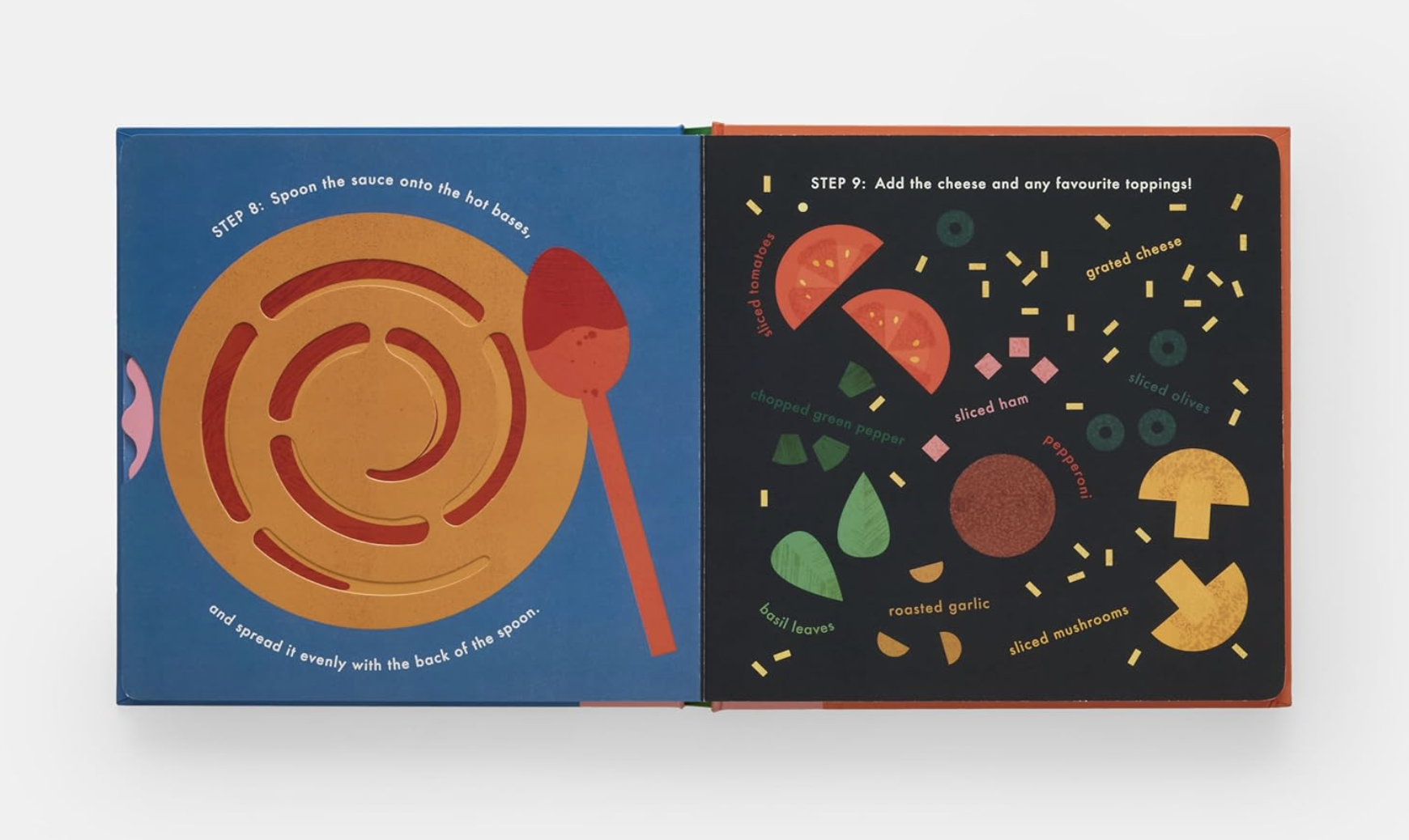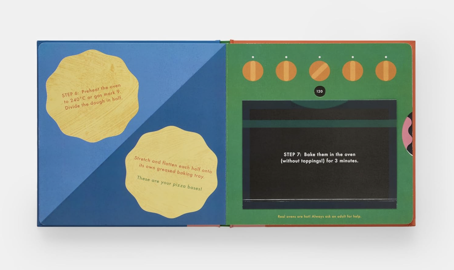 Simple yet accurate recipe text takes readers through the steps of cooking pizza, from dough to toppings, while the interactive novelty features invite them to participate in the process! One hundred percent adult-free, knife-free, oven-free, and mess-free, cooking pizza has never been so independent! Perfect for kids who love to help in the kitchen, or any child who prefers to 'do it myself'. This is the second title in a series of interactive recipe books.