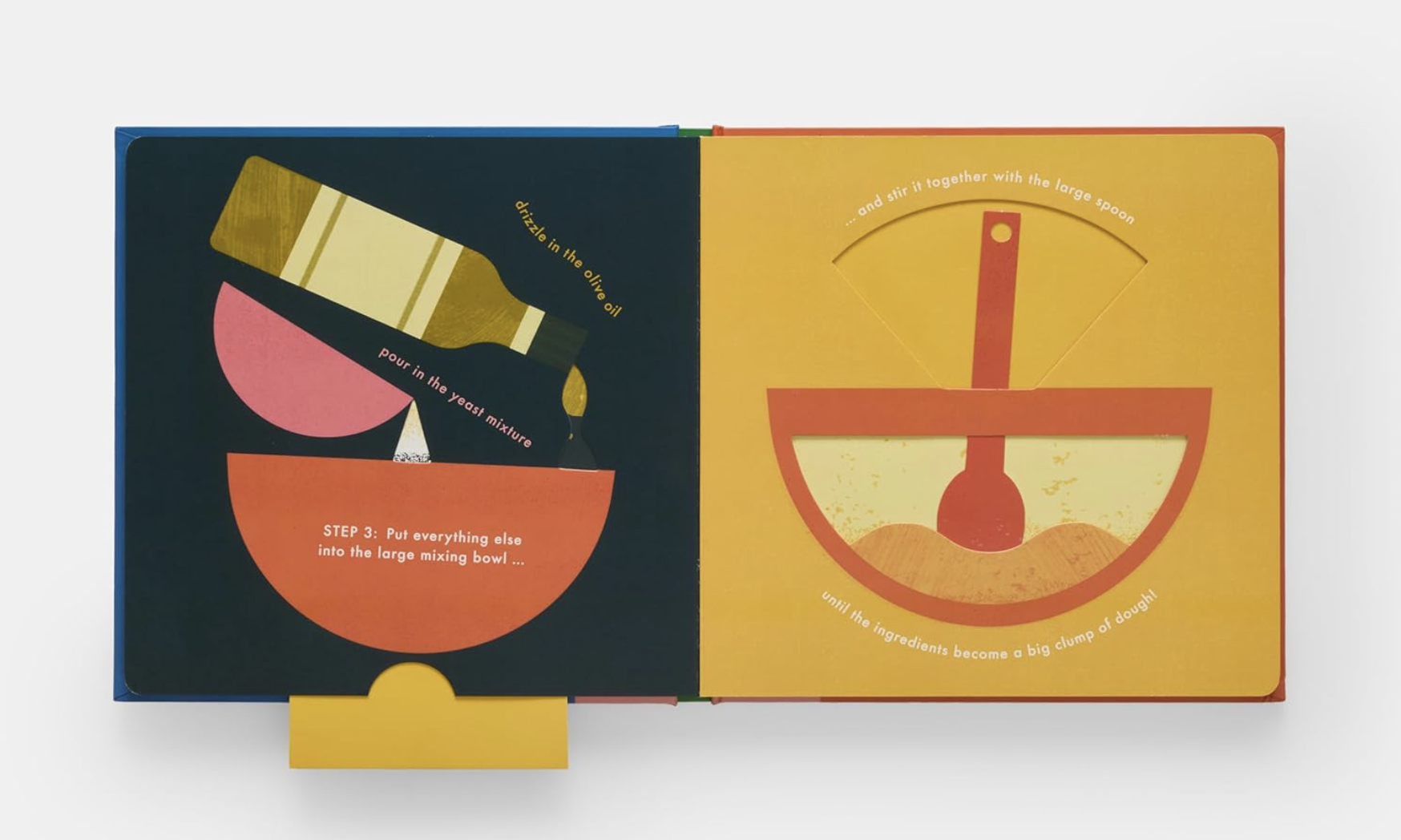 Cook pizza from scratch in this fully interactive recipe book that allows readers mix the ingredients, knead the dough, spread the sauce, and more!