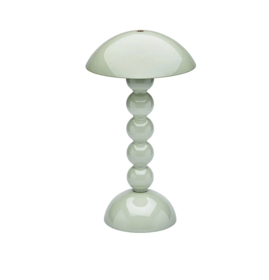 The Bobbin Rechargeable Portable Lamp features a glossy, orb-stacked base with a mushroom shade—bringing cozy chic to your space.