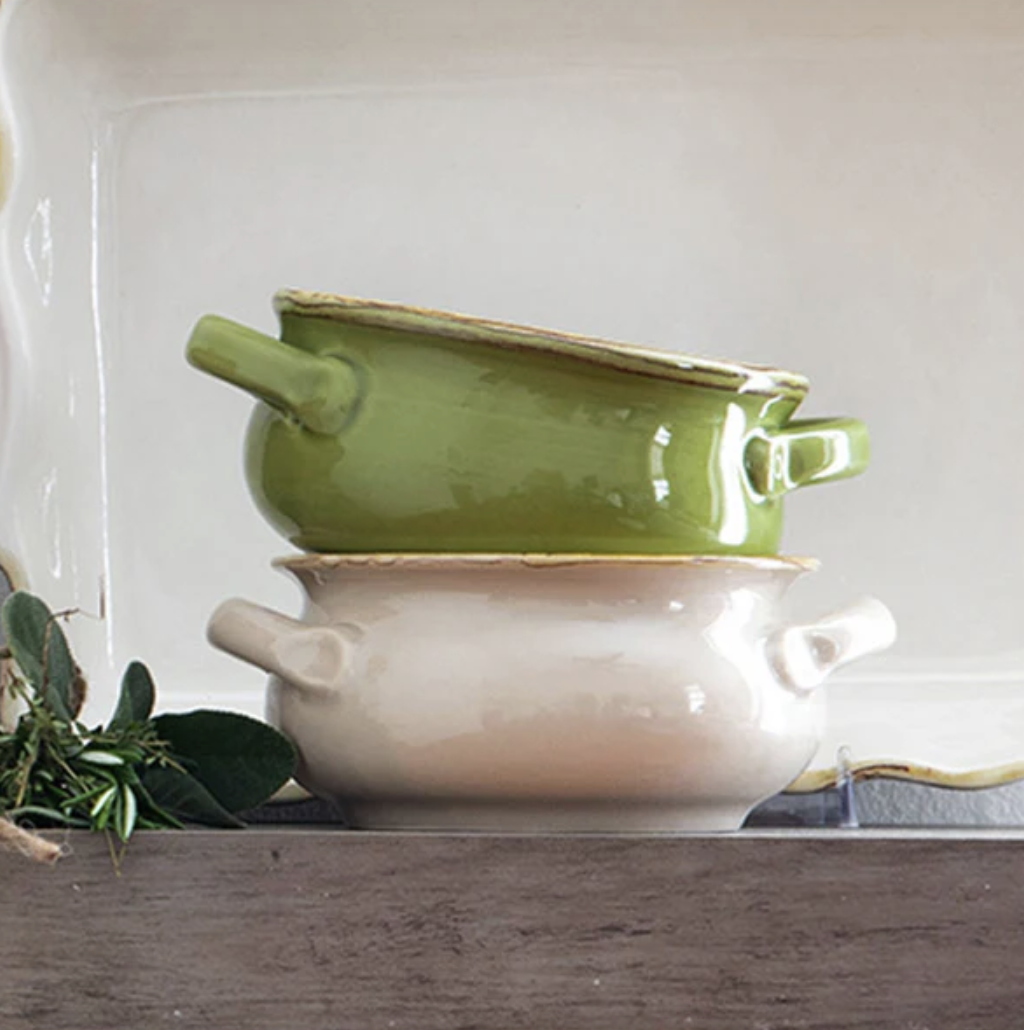 Oven Safe - VIETRI's casserole and baking dishes can be used in most conventional ovens and dishwashers. They are handcrafted of very dense clays and fired at high temperatures, making them heat-resistant up to 400°F. Do not use casserole lids in the oven, unless otherwise noted. Hot casseroles and baking dishes should never be placed on cool, damp, or unprotected surfaces. VIETRI bakeware should never be taken directly from the refrigerator to the oven due to the extreme temperature change, nor should it be placed directly from the oven to the freezer. The handles of these pieces are decorative and should not be used for support. Please remove the bakeware from the oven by holding the body of the dish, supporting the base.