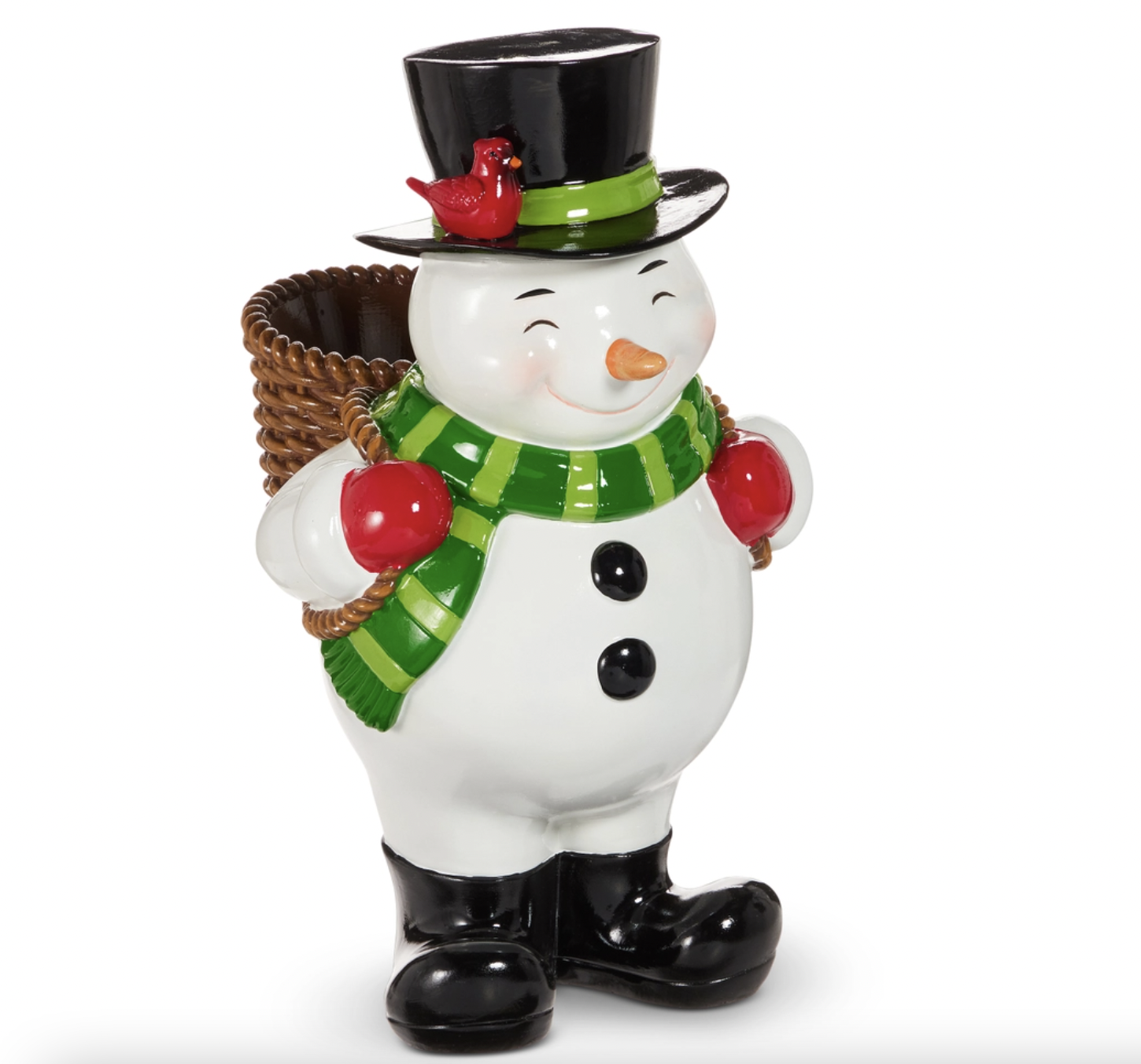 Add a bit of whimsy and fun to your holiday decor with this darling snowman with basket.