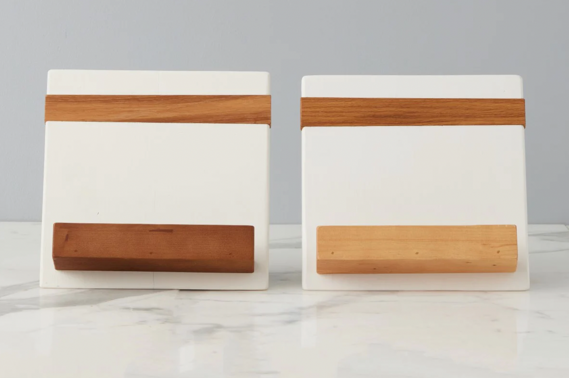 A supreme example of beauty meets function, our chic and practical Mod iPad and Cookbook Holder is the new countertop staple. Made of reclaimed wood and finished with a 100% plant-based, food-safe wax, this essential accessory is sure to keep you focused. The stand boasts a contrasting slat and a lipped shelf which keeps your page for easy visibility while you cook. This fundamental kitchen or office accessory ensures your favorite recipes and important emails stay within sight while offering style to the kitchen counter or desk. We also like this stand in a child’s room to display favorite story books.
