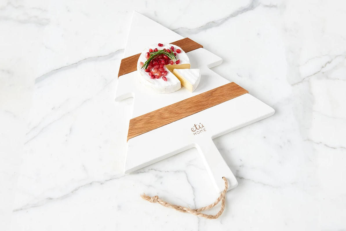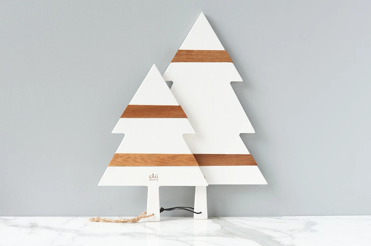 Impress your guests this holiday season with the White Mod Tree Charcuterie Board. Modern, yet festive, this seasonal addition to the popular Mod Charcuterie collection is a hostess wonderland. This serving board boasts a fresh whitewash finish and the slats have maintained their exquisite organic beauty. Ideal for use as a charcuterie plate, showcasing bread, cheese or fruit, this board can also be used as a decorative kitchen accent during the Christmas season.