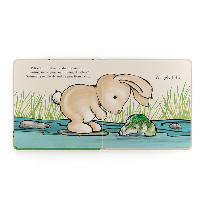 Who Can I Find? by Jelly Cat is a gorgeous illustrated adventure with lift-up flaps. Follow the words and pictures, and search under rocks, clouds and lily pads to see who's hiding there. You'll meet a lot of new friends in this charming, surprising story!