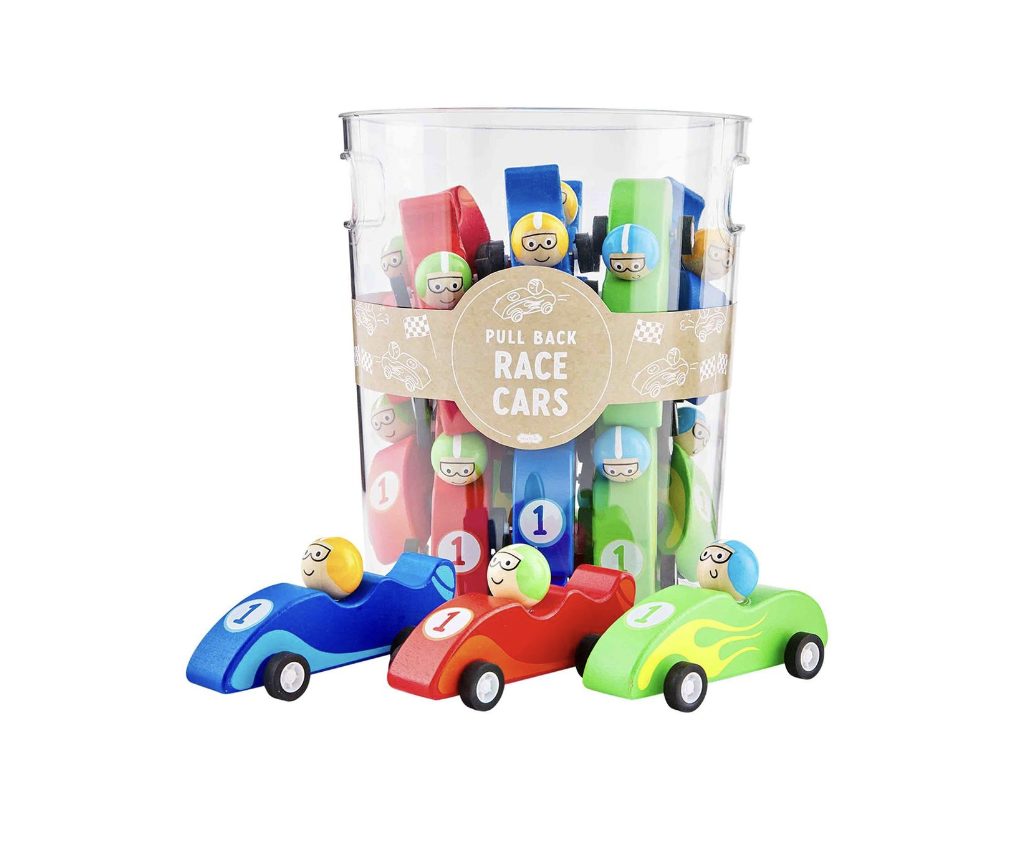 Wooden pull-back race car. Pull back and watch them go! Collect all three!